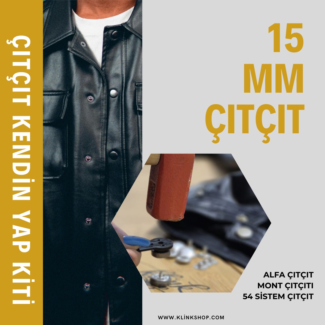 Aparatlı pakette; 15 takım çıtçıt ve çekiçle uygulama aparatları bulunur. İÇİNDEKİ KOLAY UYGULAMA APARATLARI SAYESİNDE SADECE BİR ÇEKİÇ İLE TEKSTİLİNİZE UYGULANIR.