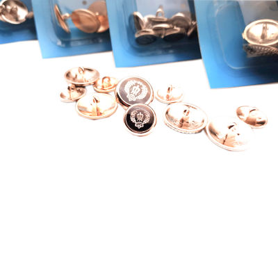 Setin içinde, ceket ön kısım ve kollar için ayrı ayrı olmak üzere iki ebatta, 6 adet büyük, 12 adet küçük, toplam 18 adet metal, alttan ayaklı, dikilerek kullanılan düğme bulunur.