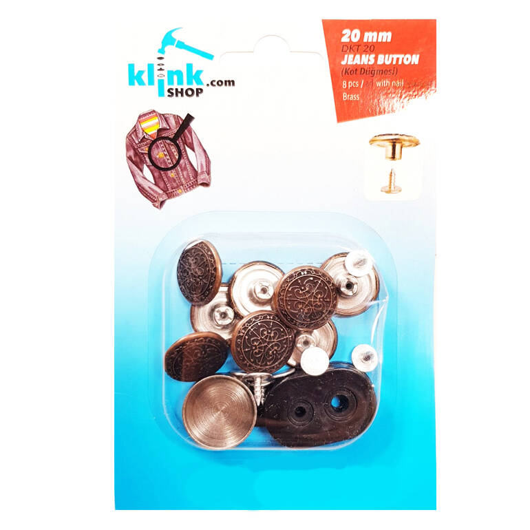 It's a 20 mm button suitable for jeans, denim jackets, home textile, and various hobby products. It can be used for textile repair and hobby purposes.