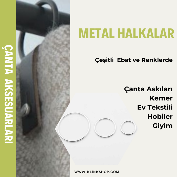 Özellikle çanta saplarında olmakla birlikte birçok alanda ve hobilerde kullanıma uygun, yüzeyi düz görünümlü metal (zamak) halkadır.