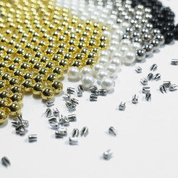 A pack contains 100 pieces of gold-colored spherical pearl of your dimension choice and their nails. The easy-to-use hand tool is NOT included.